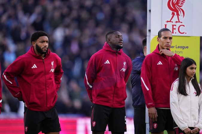 Virgil van Dijk of Liverpool,Joe Gomez of Liverpool and Ibrahima Konaté of Liverpool ahead of kick off during the Premier League match West Ham United vs Liverpool at London Stadium, London, United Kingdom, 30th November 2025, Credit:Harvey Murphy/News Images / Avalon