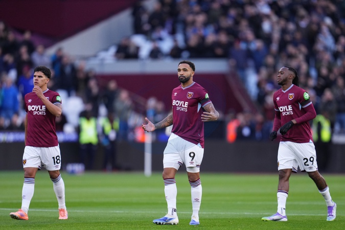 West Ham players ahead of kick off during the Premier League match West Ham United vs Liverpool at London Stadium, London, United Kingdom, 30th November 2025, Credit:Harvey Murphy/News Images / Avalon