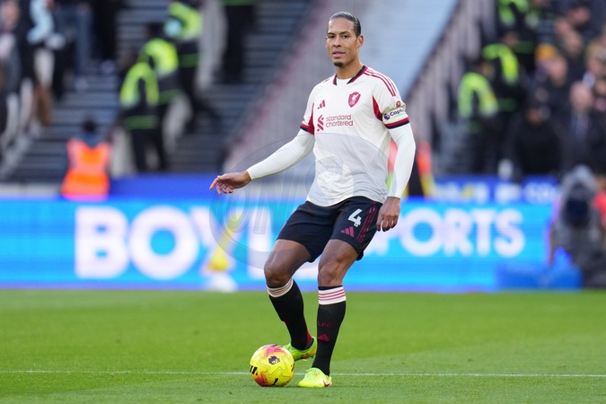 Virgil van Dijk of Liverpool on the ball during the Premier League match West Ham United vs Liverpool at London Stadium, London, United Kingdom, 30th November 2025, Credit:Harvey Murphy/News Images / Avalon