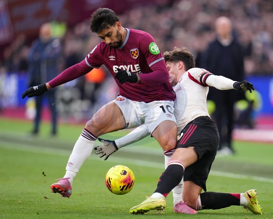 Milos Kerkez of Liverpool tackles Lucas Paqueta of West Ham United during the Premier League match West Ham United vs Liverpool at London Stadium, London, United Kingdom, 30th November 2025, Credit:Harvey Murphy/News Images / Avalon