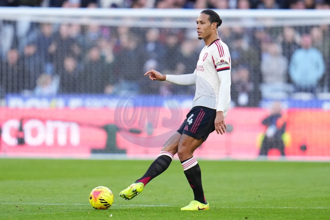 Virgil van Dijk of Liverpool plays a forward pass during the Premier League match West Ham United vs Liverpool at London Stadium, London, United Kingdom, 30th November 2025, Credit:Harvey Murphy/News Images / Avalon
