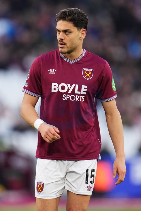 Konstantinos Mavropanos of West Ham United during the Premier League match West Ham United vs Liverpool at London Stadium, London, United Kingdom, 30th November 2025, Credit:Harvey Murphy/News Images / Avalon