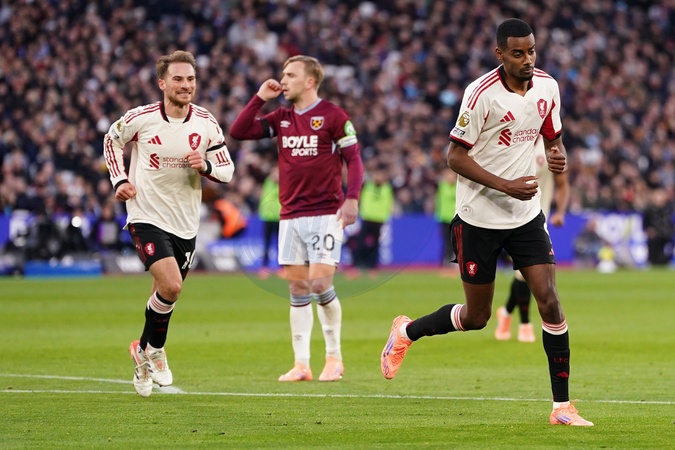 Alexander Isak of Liverpool scores first premier league goal for Liverpool during the Premier League match West Ham United vs Liverpool at London Stadium, London, United Kingdom, 30th November 2025, Credit:Harvey Murphy/News Images / Avalon