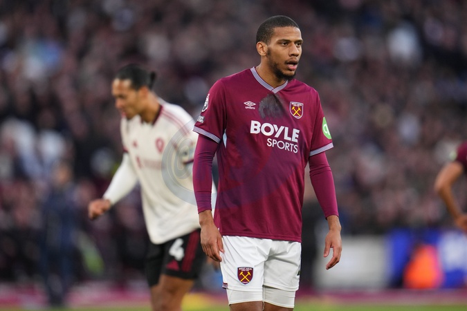 Jean-Clair Todibo of West Ham United during the Premier League match West Ham United vs Liverpool at London Stadium, London, United Kingdom, 30th November 2025, Credit:Harvey Murphy/News Images / Avalon