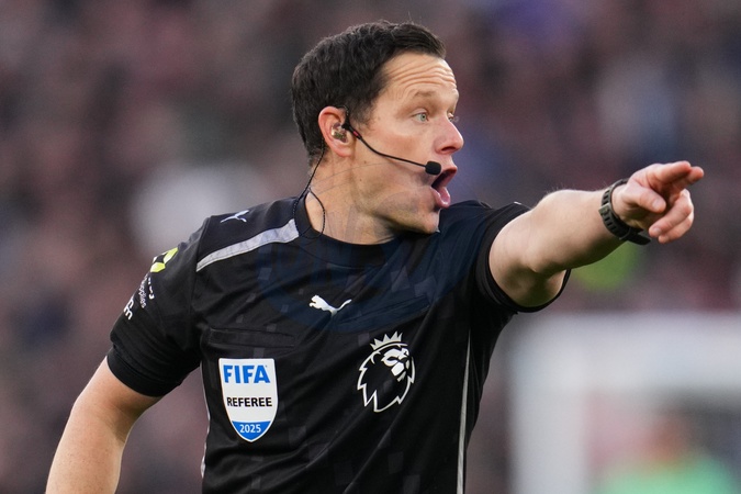 Darren England the referee during the Premier League match West Ham United vs Liverpool at London Stadium, London, United Kingdom, 30th November 2025, Credit:Harvey Murphy/News Images / Avalon