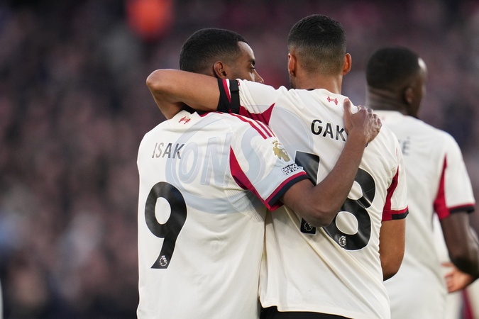 Alexander Isak of Liverpool and Cody Gakpo of Liverpool during celebrate 0-1 lead the Premier League match West Ham United vs Liverpool at London Stadium, London, United Kingdom, 30th November 2025, Credit:Harvey Murphy/News Images / Avalon