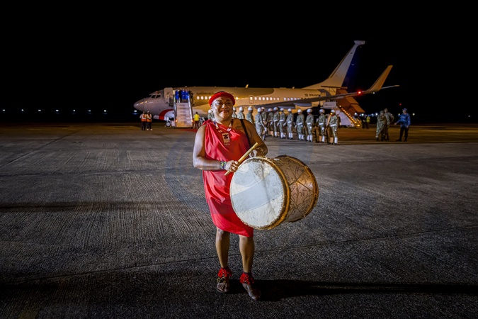 Paramaribo, The Netherlands, 2025-11-30 19:30:59PARAMARIBO, November 30, 2025, Johan Adolf Pengel International Airport. King Willem-Alexander and Queen Máxima are arriving at Johan Adolf Pengel International Airport on a state visit to the Republic of Suriname at the invitation of President Jennifer Geerlings-Simons. PHOTO: NLBeeld/Patrick van Emst, Credit:Avalon