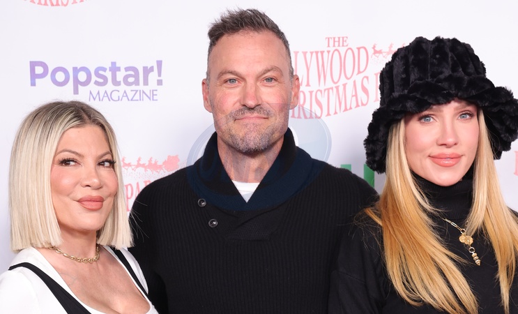 30 November 2025 . Hollywood, California - Tori Spelling, Brian Austin Green, Sharna Burgess At The 93rd Annual Hollywood Christmas Parade held at Hollywood Blvd in Hollywood., Credit:Sadou Faye / Avalon