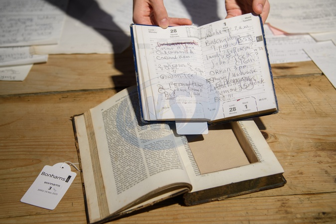 A staff member views A diary, a large collection of archival notes and lyrics, and other personal items owned by Marianne Faithfull (est. £1.5k - £2k) which is on auction at Bonhams Sound & Cinema: With Property from The Marianne Faithfull Estate Sale ending from 3rd December 2025 at Bonhams in London, England, UK on Monday 1 December, 2025., Credit:Justin Ng / Avalon