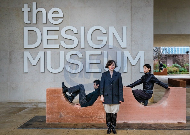 London, UK. 01st Dec, 2025. Artist Melek Zeynep Bulut poses with her work and two dancers. 'Open Monuments' by Melek Zeynep Bulut, is a new public installation and London Design Festival Landmark Project in the courtyard of the Design Museum in Kensington. LDF will present Open Monuments by Melek Zeynep Bulut at the Design Museum from 1 - 14 Dec 2025., Credit:Imageplotter / Avalon