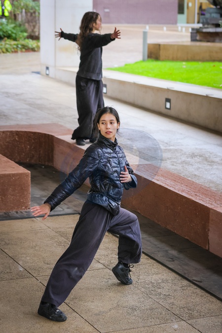 London, UK. 01st Dec, 2025. Dancers create movement around the forms of the work. 'Open Monuments' by Melek Zeynep Bulut, is a new public installation and London Design Festival Landmark Project in the courtyard of the Design Museum in Kensington. LDF will present Open Monuments by Melek Zeynep Bulut at the Design Museum from 1 - 14 Dec 2025., Credit:Imageplotter / Avalon