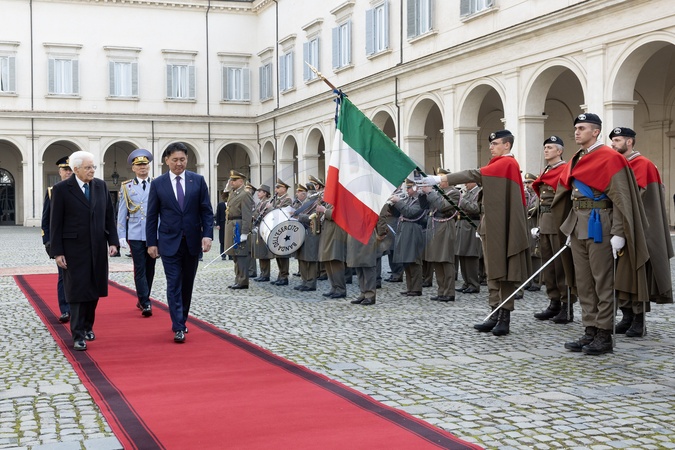 President of the Republic Sergio Mattarella with Khurelsukh Ukhnaa, President of Mongolia, on an official visit. December 1, 2025, Rome., Credit:Press Office/Ammendola / Avalon