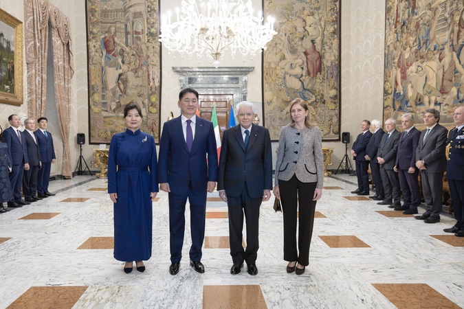 December 1, 2025, Rome. President of the Republic Sergio Mattarella and Mrs. Laura with Khurelsukh Ukhnaa, President of Mongolia, and Mrs. Luvsandorj Bolortsetseg, on an official visit. December 1, 2025, Rome., Credit:Press Office/Ammendola / Avalon