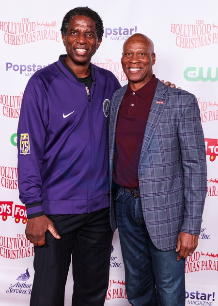 HOLLYWOOD, LOS ANGELES, CALIFORNIA, USA - NOVEMBER 30: American former professional basketball player A. C. Green and American former professional basketball player and coach Byron Scott arrive at the 93rd Annual Hollywood Christmas Parade Featuring Grand Marshal Luke Wilson To Support Marine Toys For Tots held on Hollywood Boulevard on November 30, 2025 in Hollywood, Los Angeles, California, United States., Credit:Xavier Collin / Avalon