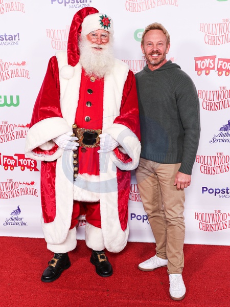 HOLLYWOOD, LOS ANGELES, CALIFORNIA, USA - NOVEMBER 30: Cortney Lofton dressed as Santa Claus and American actor Ian Ziering arrive at the 93rd Annual Hollywood Christmas Parade Featuring Grand Marshal Luke Wilson To Support Marine Toys For Tots held on Hollywood Boulevard on November 30, 2025 in Hollywood, Los Angeles, California, United States., Credit:Xavier Collin / Avalon