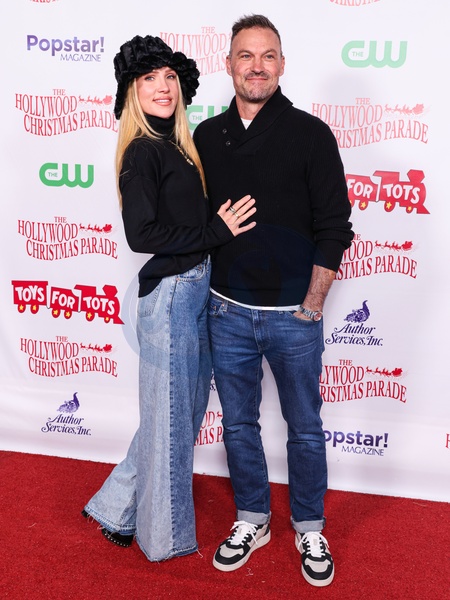 HOLLYWOOD, LOS ANGELES, CALIFORNIA, USA - NOVEMBER 30: Australian ballroom dancer Sharna Burgess and boyfriend/American actor, producer, and former rapper Brian Austin Green arrive at the 93rd Annual Hollywood Christmas Parade Featuring Grand Marshal Luke Wilson To Support Marine Toys For Tots held on Hollywood Boulevard on November 30, 2025 in Hollywood, Los Angeles, California, United States., Credit:Xavier Collin / Avalon