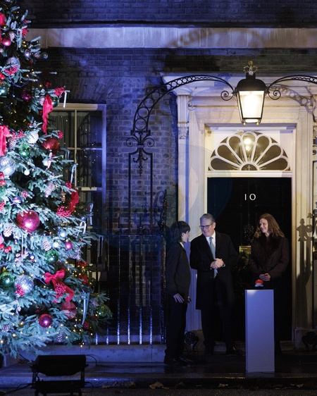 01/12/2025. London, United Kingdom. Prime Minister Keir Starmer turns on the Christmas tree lights outside 10 Downing Street., Credit:Lauren Hurley / Avalon