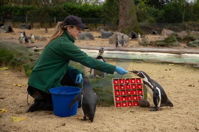 CURIOUS Humboldt penguins (Spheniscus humboldti) inspect a special advent calendar garnished with fishy treats at London Zoo's Penguin Beach, marking the official countdown to Christmas at the conservation zoo.London Zoo's Magic of Christmas events are running until Sunday 4 January, with activities including a hidden elves trail, Christmas-inspired animal talks and elf-led storytelling sessions, all included with zoo-entry. Book online now at www.londonzoo.org/christmas. Picture date: Monday December 1, 2025., Credit:Johnny Green / Avalon