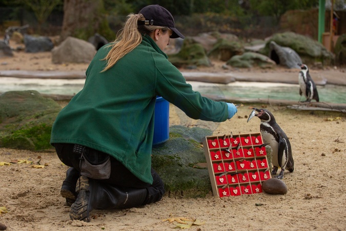 CURIOUS Humboldt penguins (Spheniscus humboldti) inspect a special advent calendar garnished with fishy treats at London Zoo's Penguin Beach, marking the official countdown to Christmas at the conservation zoo.London Zoo's Magic of Christmas events are running until Sunday 4 January, with activities including a hidden elves trail, Christmas-inspired animal talks and elf-led storytelling sessions, all included with zoo-entry. Book online now at www.londonzoo.org/christmas. Picture date: Monday December 1, 2025., Credit:Johnny Green / Avalon