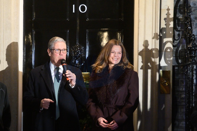 British Prime Minister Sir Keir Starmer and wife Victoria Starmer host the Christmas light switch on (switched on by 14 Year old Litter Campaigner Samuel Salamone) in Downing Street, London, England, UK on Monday 1 December, 2025., Credit:Justin Ng / Avalon