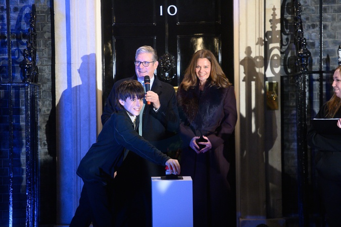British Prime Minister Sir Keir Starmer and wife Victoria Starmer host the Christmas light switch on (switched on by 14 Year old Litter Campaigner Samuel Salamone) in Downing Street, London, England, UK on Monday 1 December, 2025., Credit:Justin Ng / Avalon