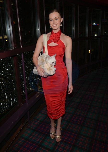 Sian Osborne with their pet Chihuahua seen at the Boisdale Cigar Awards 2025, Boisdale of Canary Wharf, London 01-12-2025, Credit:Jules Annan / Avalon