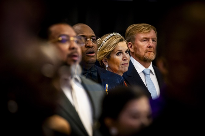 Paramaribo, The Netherlands, 2025-12-01 20:03:03PARAMARIBO, December 1, 2025, Prince Ballroom. King Willem-Alexander and Queen Máxima are paying a state visit to the Republic of Suriname at the invitation of President Jennifer Geerlings-Simons. In honor of King Willem-Alexander and Queen Máxima's state visit, President Simons is hosting a state banquet. PHOTO: NLBeeld/POOL/Patrick van Katwijk. Pictured:, Credit:Avalon