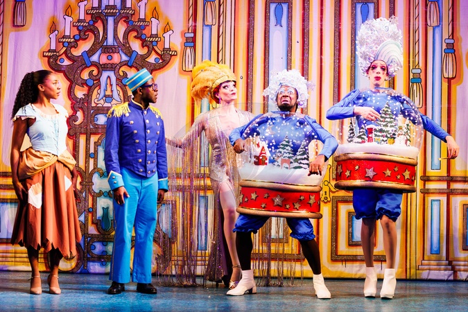 Siobhan James as Cinderella, Nicholas McLean as Buttons, Alexandra Waite-Roberts as Oblivia, the Wicked Stepmother and George Heyworth and Kat B as the Ugly Sisters Nausea and Flatula in the Cinderella Panto at the Hackney Empire in London on 2 December 2025, Credit:Manuela Langotsch / Avalon
