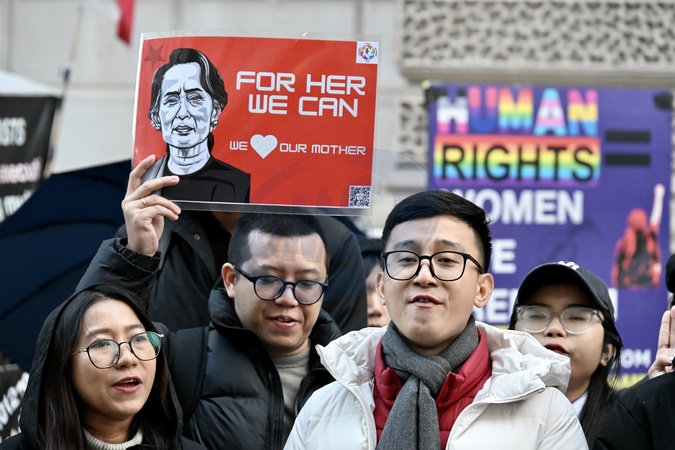 London, UK. A protest was held outside the Foreign Office & EU Delegation Office to oppose the Myanmar regimes 2025-26 elections on November 25th., Credit:Michael Melia / Avalon