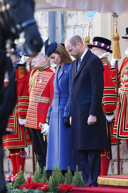 State visit of the President of Germany Frank-Walter Steinmeier along with his wife Elke Büdenbender visit Windsor Castle on day one of the state visit In the Quadrangle of Windsor Castle, a Guard of Honour will give a Royal Salute and theregimental Band will play the German and British National Anthems. The Federal President,accompanied by The King, will inspect the Guard of Honour, before rejoining The Queen and Ms.Büdenbender, together with The Prince and Princess of Wales, to view the military Rank andMarch past., Credit:Ian Vogler / Avalon