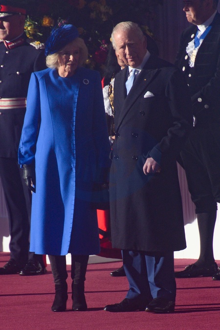 King Charles III and Queen Camilla at the Ceremonial Welcome for the State Visit of The President of Germany Frank-Walter Steinmeier at Windsor in Windsor, England, UK on Wednesday 03 December, 2025., Credit:Justin Ng / Avalon