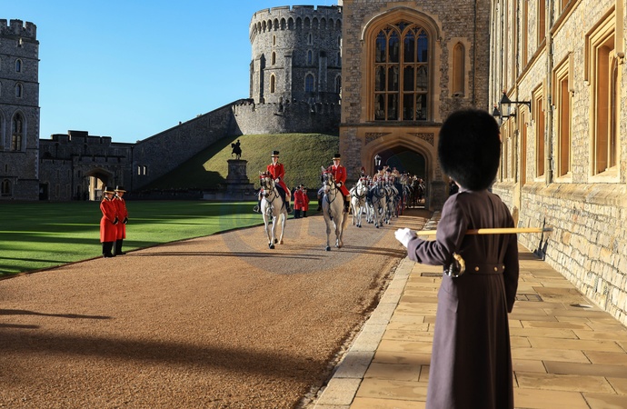 03/12/2025. Windsor, UK. The King and Queen formally welcome The Federal President and The First Lady to the Royal Dais, on Datchet Road, Windsor, where a Royal Salute was fired in the Home Park in Windsor, and at the Tower of London. The Federal President and Ms. Büdenbender then joined The King and Queen, and The Prince and Princess of Wales, in a carriage procession to Windsor Castle., Credit:Pete Maclaine / Avalon