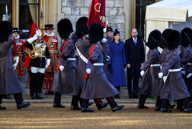 03/12/2025. Windsor, UK. In the Quadrangle of Windsor Castle, a Guard of Honour will gave a Royal Salute and the regimental Band played the German and British National Anthems. The Federal President, accompanied by The King, inspected the Guard of Honour, before rejoining The Queen and Ms. Büdenbender, together with The Prince and Princess of Wales, to view the military Rank andMarch past., Credit:Pete Maclaine / Avalon