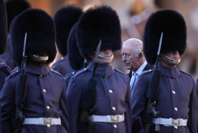 King Charles III inspects a Guard of Honour during the ceremonial welcome at Windsor Castle, Berkshire, on day one of the state visit to the UK by the President of the Federal Republic of Germany. Picture date: Wednesday December 3, 2025., Credit:Andrew Matthews / Avalon