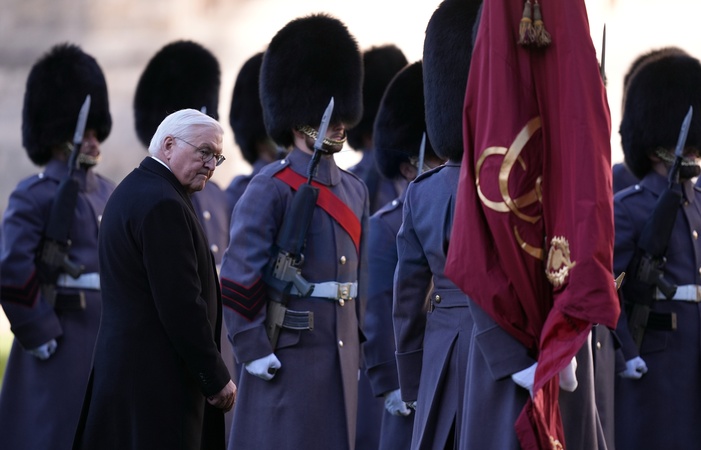 German President Frank-Walter Steinmeier inspects a Guard of Honour during the ceremonial welcome at Windsor Castle, Berkshire, on day one of the state visit to the UK by the President of the Federal Republic of Germany. Picture date: Wednesday December 3, 2025., Credit:Andrew Matthews / Avalon