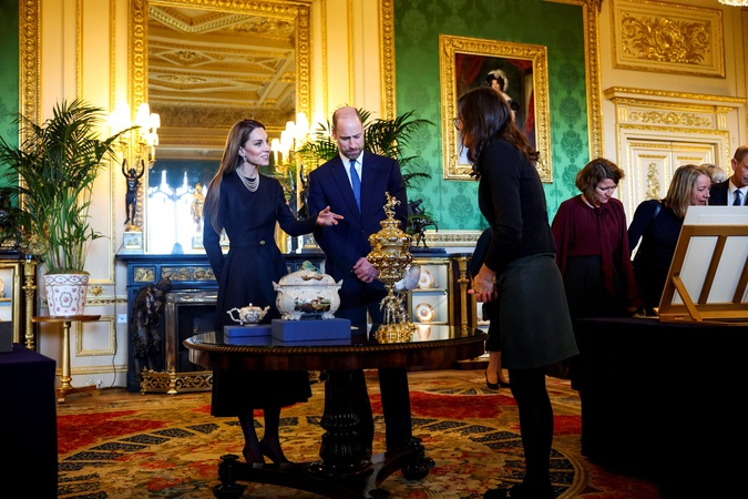 Britain's Prince William, Prince of Wales, and Catherine, Princess of Wales react as they view items on display relating to Germany, during a visit to the Royal Collection exhibition in the Green Drawing Room at Windsor Castle, during German President Frank-Walter Steinmeier's state visit to Britain, in Windsor, Britain, December 3, 2025. REUTERS/Hannah, Credit:Hannah McKay / Avalon