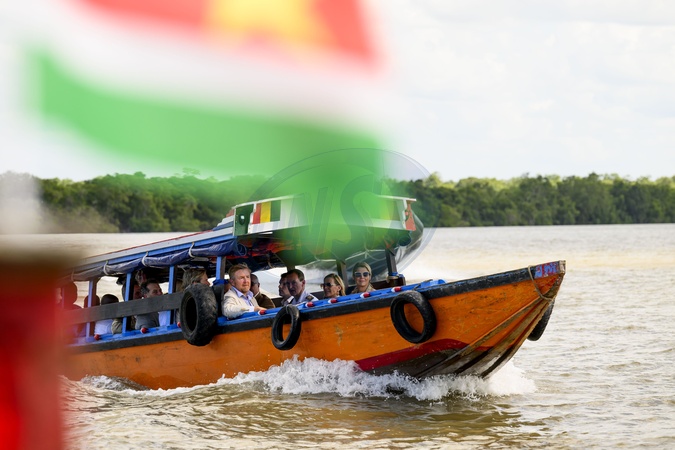Paramaribo, The Netherlands, 2025-12-03 14:08:21PARAMARIBO, December 3, 2025. King Willem-Alexander and Queen Máxima are paying a state visit to the Republic of Suriname at the invitation of President Jennifer Geerlings-Simons. This includes a boat trip on the Suriname River and the Commewijne River. During the trip, the Royal Couple will receive an explanation of the value of the rivers (water) and mangroves (forest) to Suriname from a spiritual, economic, and ecological perspective. PHOTO: NLBeeld/Patrick van Emst, Credit:Avalon