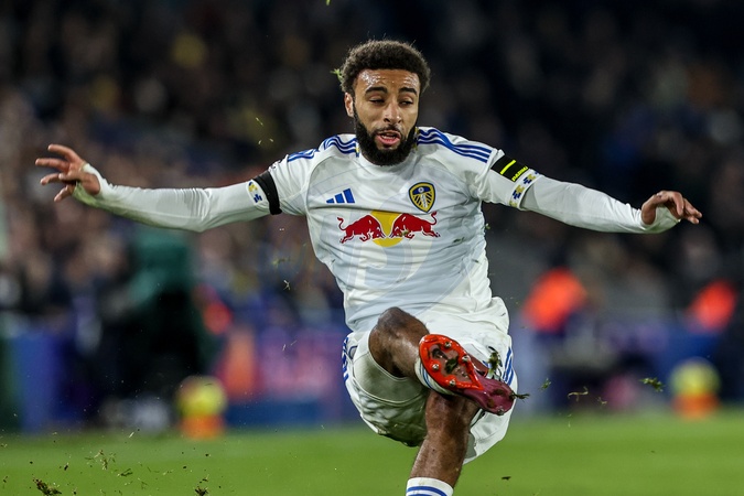 Jayden Bogle of Leeds United slips as he passes the ball during the Premier League match Leeds United vs Chelsea at Elland Road, Leeds, United Kingdom, 3rd December 2025, Credit:Ae Cosgrove/News Images / Avalon