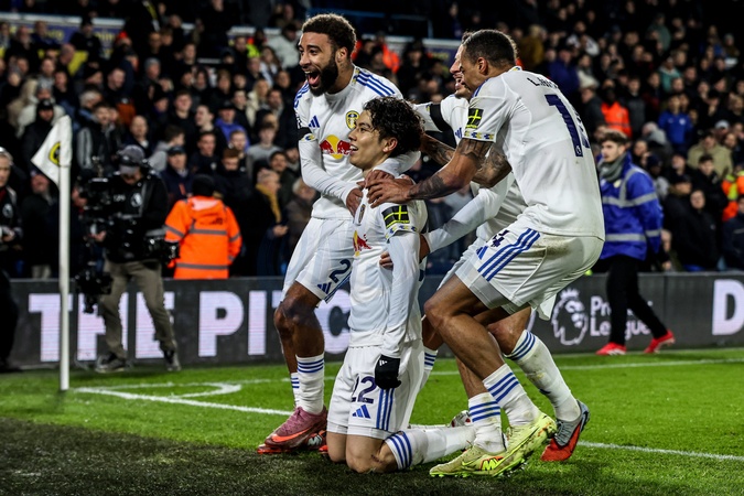 Ao Tanaka of Leeds United celebrates his goal to make it 2-0 during the Premier League match Leeds United vs Chelsea at Elland Road, Leeds, United Kingdom, 3rd December 2025, Credit:Ae Cosgrove/News Images / Avalon