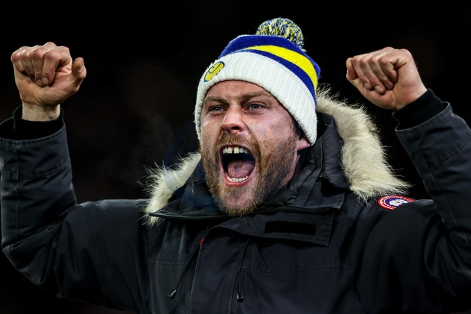Leeds fans celebrate a goal making the score 1-0 during the Premier League match Leeds United vs Chelsea at Elland Road, Leeds, United Kingdom, 3rd December 2025, Credit:Ae Cosgrove/News Images / Avalon