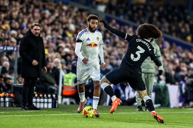 Jayden Bogle of Leeds United and Marc Cucurella of Chelsea battle for the ball during the Premier League match Leeds United vs Chelsea at Elland Road, Leeds, United Kingdom, 3rd December 2025, Credit:Ae Cosgrove/News Images / Avalon