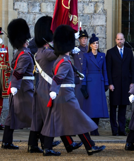 03/12/2025. Windsor, UK. In the Quadrangle of Windsor Castle, a Guard of Honour will gave a Royal Salute and the regimental Band played the German and British National Anthems. The Federal President, accompanied by The King, inspected the Guard of Honour, before rejoining The Queen and Ms. Büdenbender, together with The Prince and Princess of Wales, to view the military Rank andMarch past., Credit:Pete Maclaine / Avalon