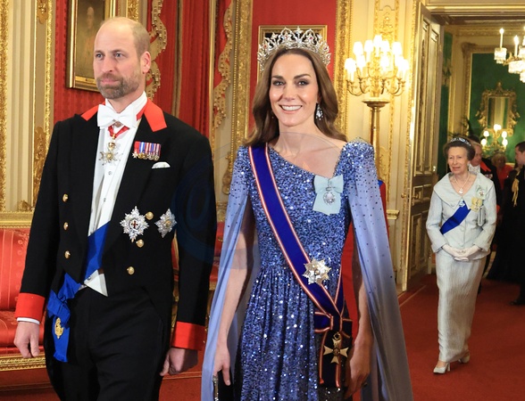 03/12/2025. Windsor, UK. His Majesty, accompanied by The Queen and Members of the Royal Family, gave a State Banquet at Windsor Castle for The President of the Federal Republic of Germany and Ms. Büdenbender. The King and The Federal President both delivered speeches at the beginning of the banquet., Credit:Pete Maclaine / Avalon