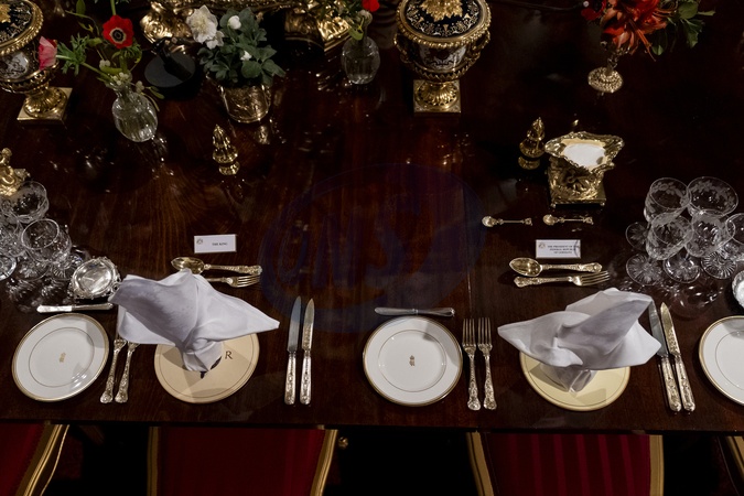 EMBARGOED TO 2000 WEDNESDAY DECEMBER 3 The place setting for King Charles III and German President Frank-Walter Steinmeier in St George's Chamber during the state banquet for the German President Frank-Walter Steinmeier and his wife Elke Budenbender, at Windsor Castle, Berkshire, on day one on their state visit to the UK. Picture date: Wednesday December 3, 2025., Credit:Aaron Chown / Avalon