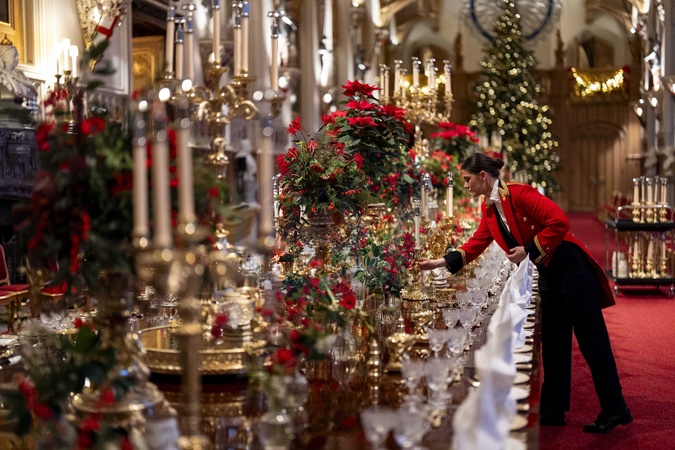 EMBARGOED TO 2000 WEDNESDAY DECEMBER 3 A member of Royal Household staff places a candle during table preparations before the state banquet for the German President Frank-Walter Steinmeier and his wife Elke Budenbender, at Windsor Castle, Berkshire, on day one of their state visit to the UK. Picture date: Wednesday December 3, 2025., Credit:Aaron Chown / Avalon