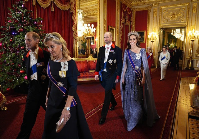 Duke and Duchess of Edinburgh (front) the Prince and Princess of Wales ahead the state banquet for the German President Frank-Walter Steinmeier and his wife Elke Budenbender, at Windsor Castle, Berkshire, on day one of their state visit to the UK. Picture date: Wednesday December 3, 2025., Credit:Aaron Chown / Avalon