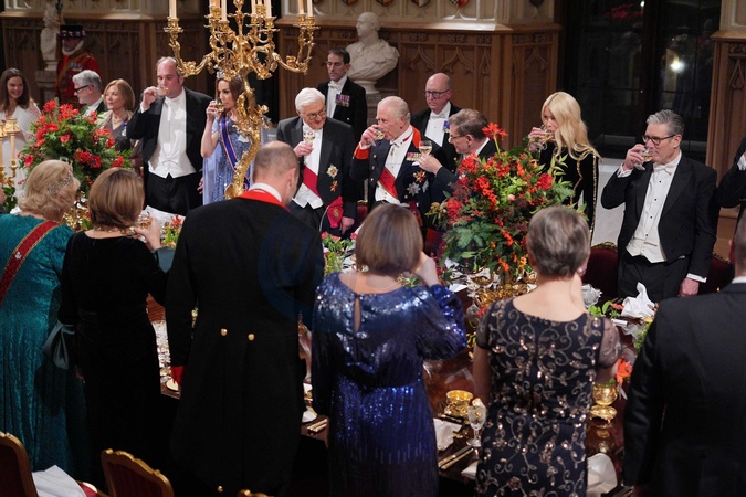 Guests raise a toast during the state banquet for the German President Frank-Walter Steinmeier and his wife Elke Budenbender, at Windsor Castle, Berkshire, on day one of their state visit to the UK. Picture date: Wednesday December 3, 2025., Credit:Yui Mok / Avalon