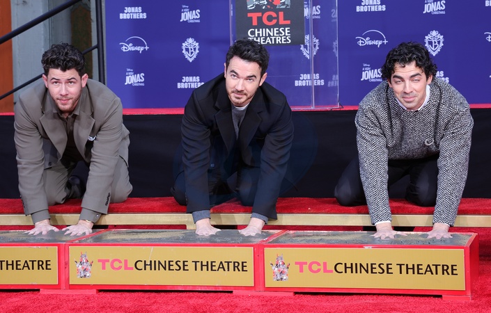 03 December 2025 . Hollywood, California - Nick Jonas, Kevin Jonas, Joe Jonas At Jonas Brothers Hand And Footprint In Cement Ceremony held at The TCL Chinese Theatre in Hollywood., Credit:Sadou Faye / Avalon