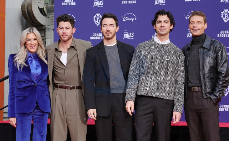 03 December 2025 . Hollywood, California - Ellen K, Nick Jonas, Kevin Jonas, Joe Jonas, Ryan Seacrest At Jonas Brothers Hand And Footprint In Cement Ceremony held at The TCL Chinese Theatre in Hollywood., Credit:Sadou Faye / Avalon