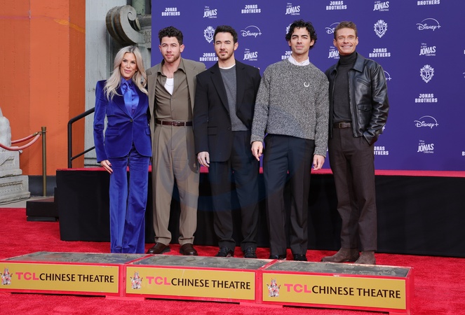 03 December 2025 . Hollywood, California - Ellen K, Nick Jonas, Kevin Jonas, Joe Jonas, Ryan Seacrest At Jonas Brothers Hand And Footprint In Cement Ceremony held at The TCL Chinese Theatre in Hollywood., Credit:Sadou Faye / Avalon